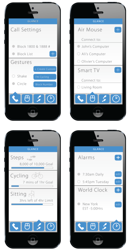 Dzięki wyposażeniu Glance w szereg czujników, możemy przy pomocy gestów sterować również np. telewizorem, czy naszym komputerem. Bez trudu włączymy i wyłączymy odtwarzanie filmu w serwisie YouTube. Jak przystało na inteligentny zegarek, Glance będzie również śledziła naszą aktywność fizyczną i zadba abyśmy wykonali dzienne minimum.