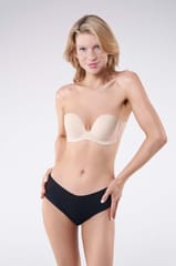 Bardotka with profiled foam cups that will stay on the chest thanks to a layer of silicone glue. The pushup effect and the lack of straps and straps is a guarantee of the success of any stylization.