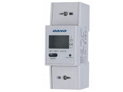 1-phase power consumption indicator, 80A, additional indicator, pulse output, RESET button, 2 modules, DIN TH-35mm