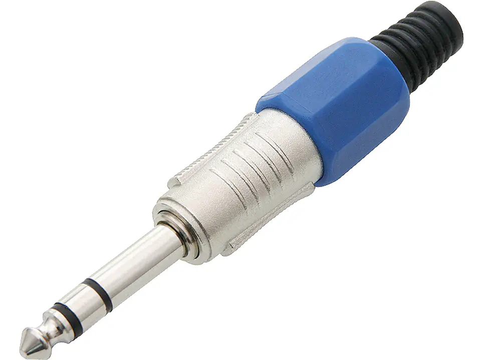 High quality metal Jack 6.3 stereo plug in blue.