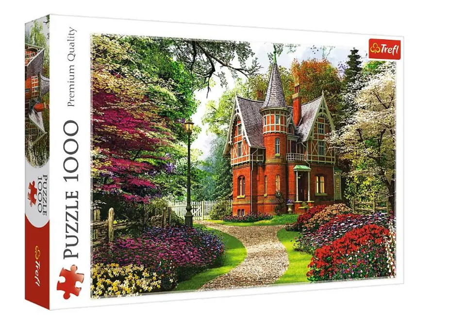 Puzzle 1000 elements with a beautiful painting of a house in Victorian style. After laying the formation of an image with dimensions of 68x48 cm. High quality, color saturation and safety arrangement provides calendered paper reflective, coated with ecological paints food.