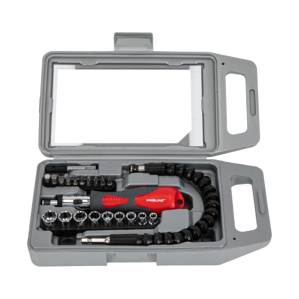 10008 Universal screwdriver with ratchet CrV, set 23el., Proline
