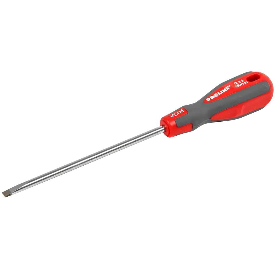Proline SOFT TOUCH screwdrivers are professional screwdrivers made of very durable chrome-vanadium-molybdenum steel that increases abrasion resistance and durability of the tip. Two-component flat screwdriver handle made of hard and soft, non-slip plastic. Screwdriver tips up to a width of 5 mm in parallel design only. Tips with a width of 6 mm in standard design.
