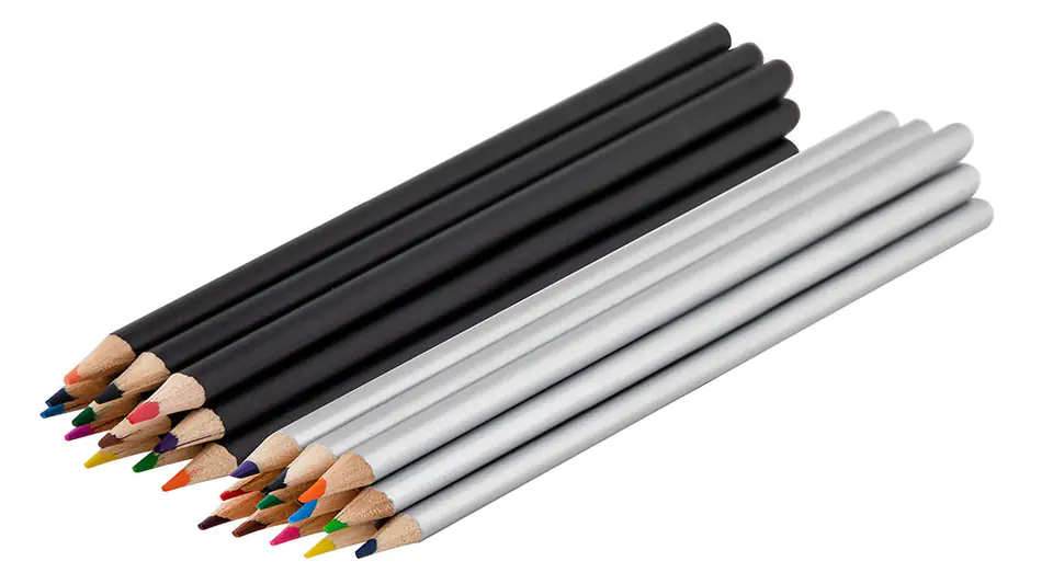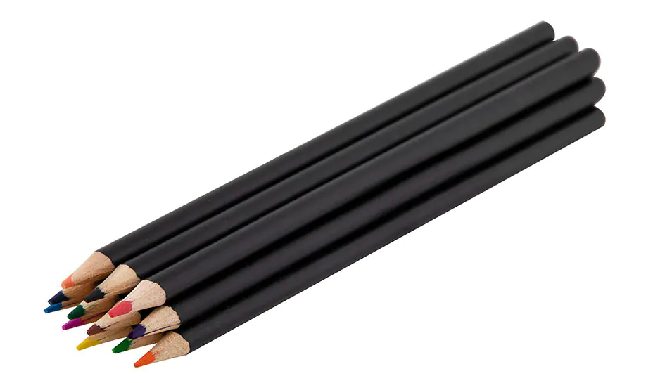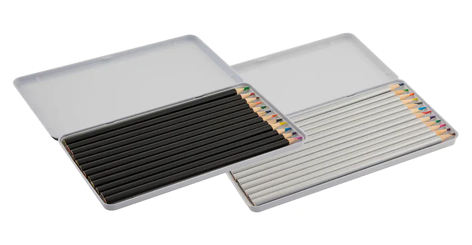- The metal box has 12x colored crayons
