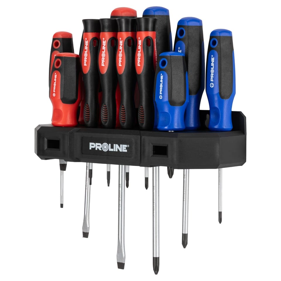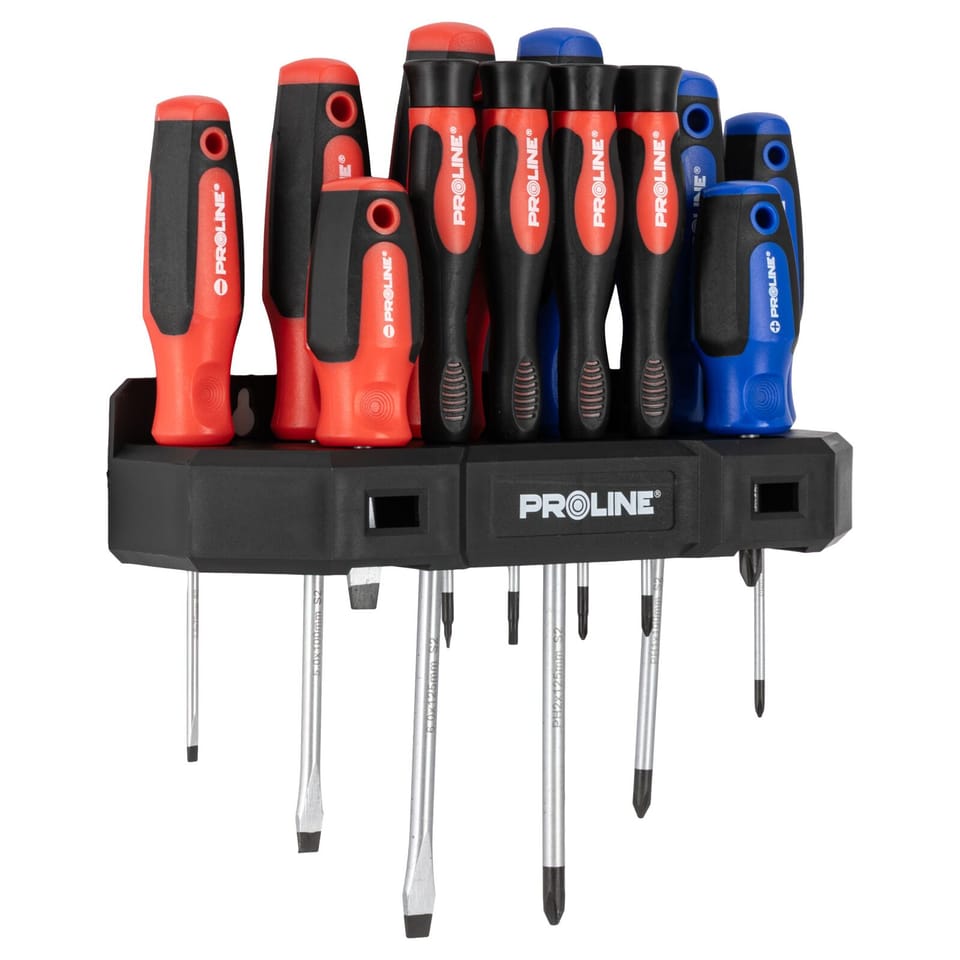 12 PCS SCREWDRIVER SET, SOFT-TOUCH,S2,MAGNET, HANGER,PROLINE