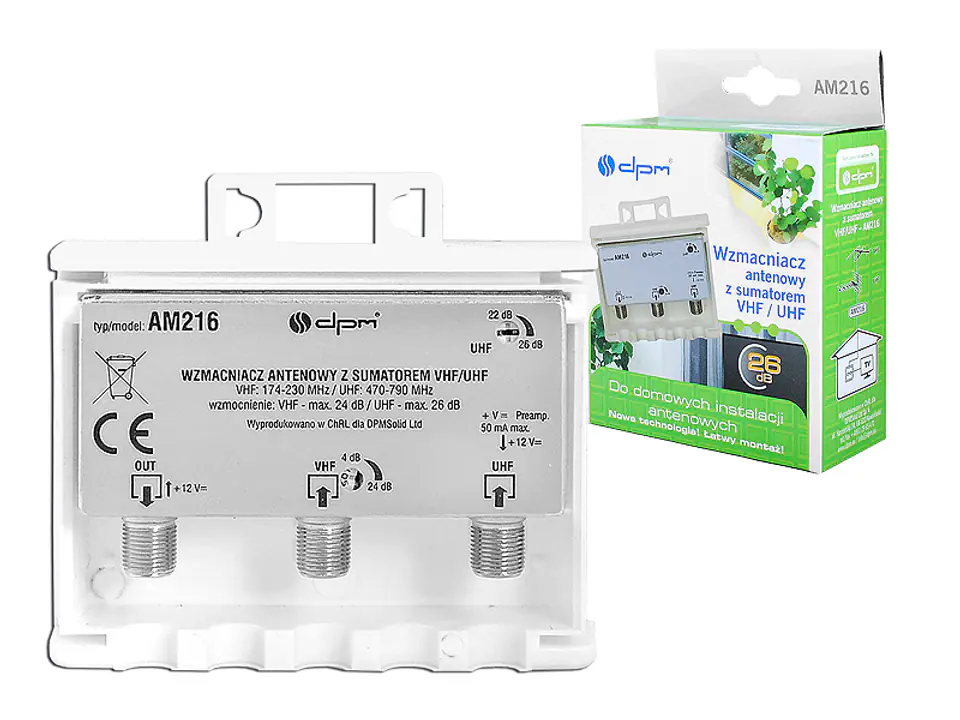 | Wzmocnienie regulowane | VHF: max. 24dB UHF: max. 26 dB |