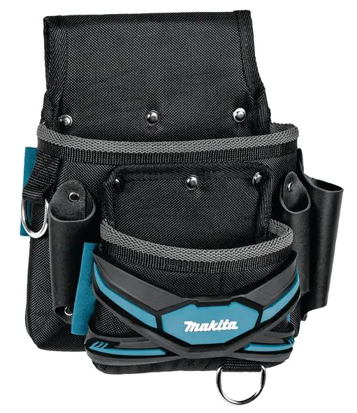 Two large compartments for tools and equipment, three leather tool holders, four elastic straps, e.g. for pliers and two D-rings for attaching key rings and carabiners.