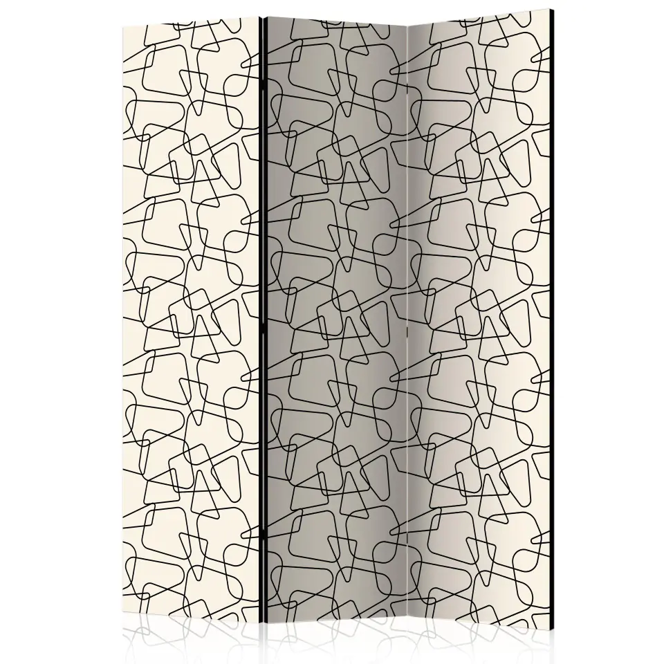 Decorative screen "3-piece screen - Rounded geometry [Room Dividers]" is a unique decoration for modern interiors. A 3-piece, made of wood and double-sided printed screen will not only discreetly divide the space but also create an amazing arrangement in the interior. Perfect workmanship and an original motif in Full HD print quality will make room screens give any interior a unique charm.