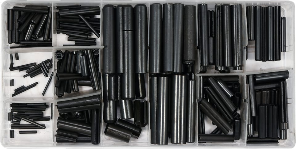 Set of 315 pieces of spring/expansion pins. The set includes sizes from 1.5x5 mm to 10x50 mm. The whole was placed in a convenient "sorter" type packaging.