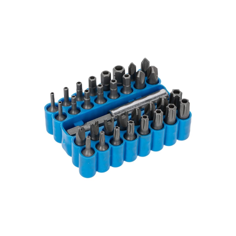 - 33 pcs.: TORX Security T8, T10, T15, T20, T25, T27, T30, T35, T40 2, 2.5, 3, 4, 5, 6 mm, 5/64”, 3/32”, 7/64”, 1/8”