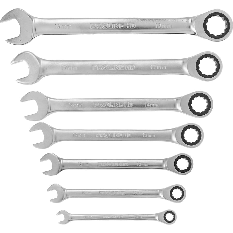 35487 Ring and flat wrenches, ratchet 7 pieces. (8-19mm),CV, ProlineHD