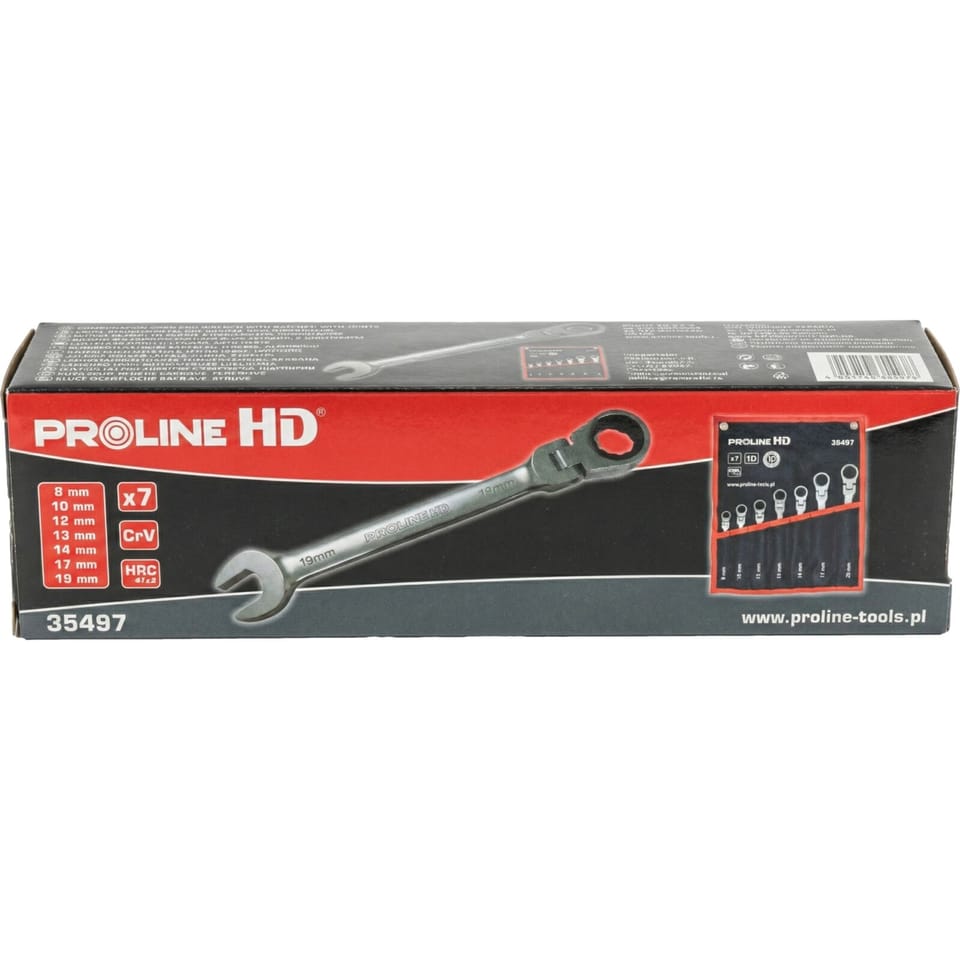 35497 Ring wrenches, ratchet joint, 7pcs (8-19mm), CV, Proline HD
