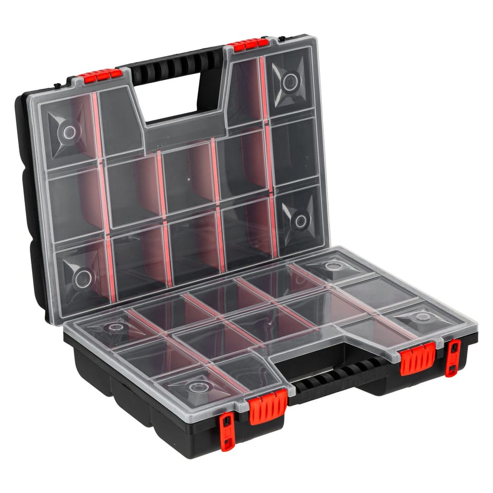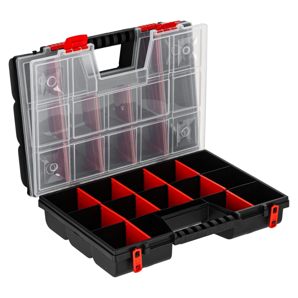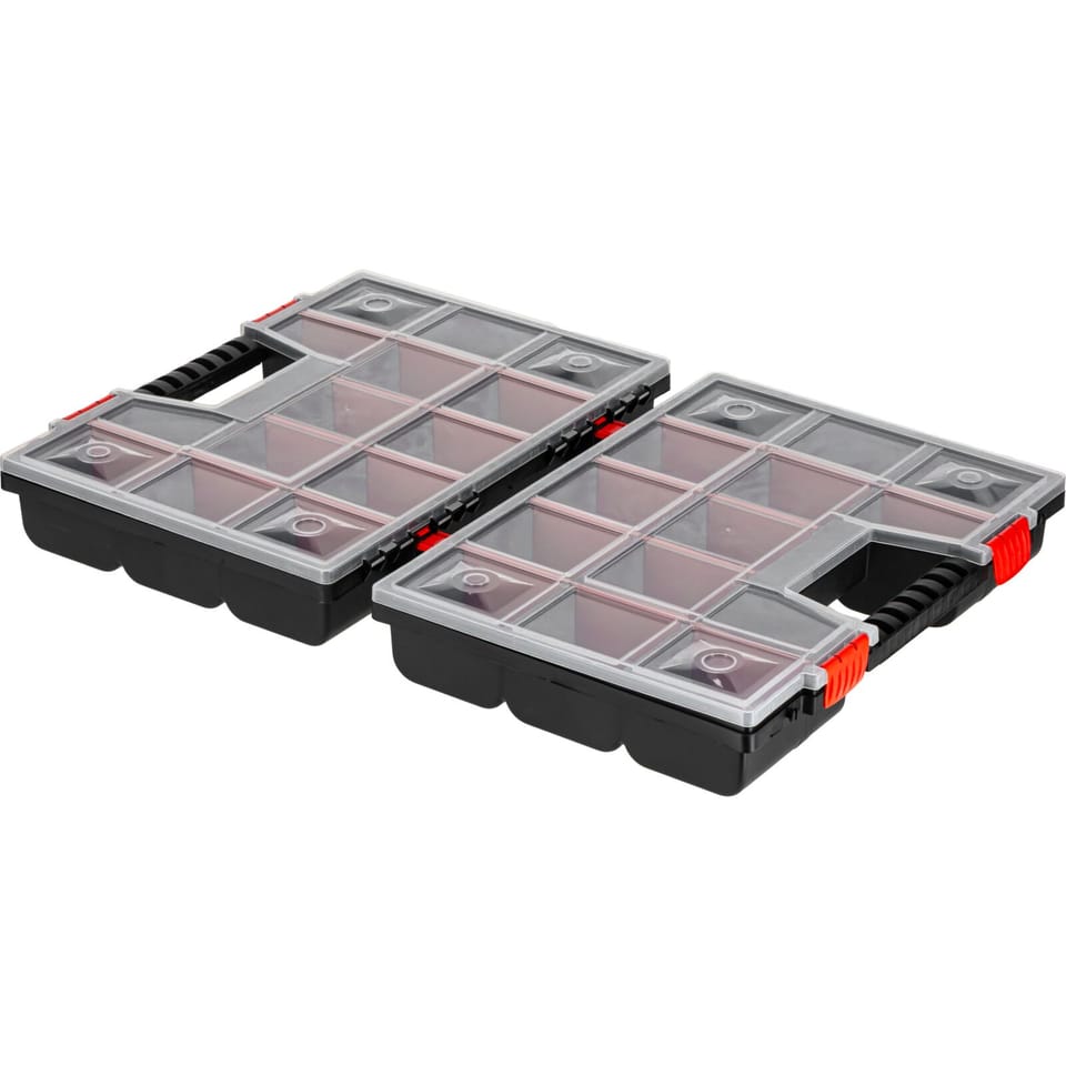 - These are two organizers of 15 compartments in each, combined with each other make them very versatile and easy to transport