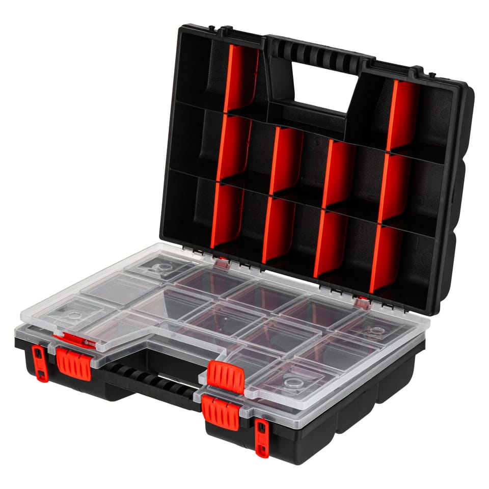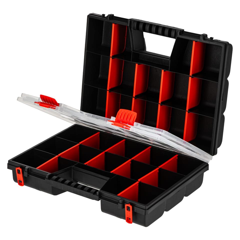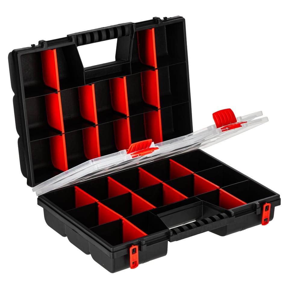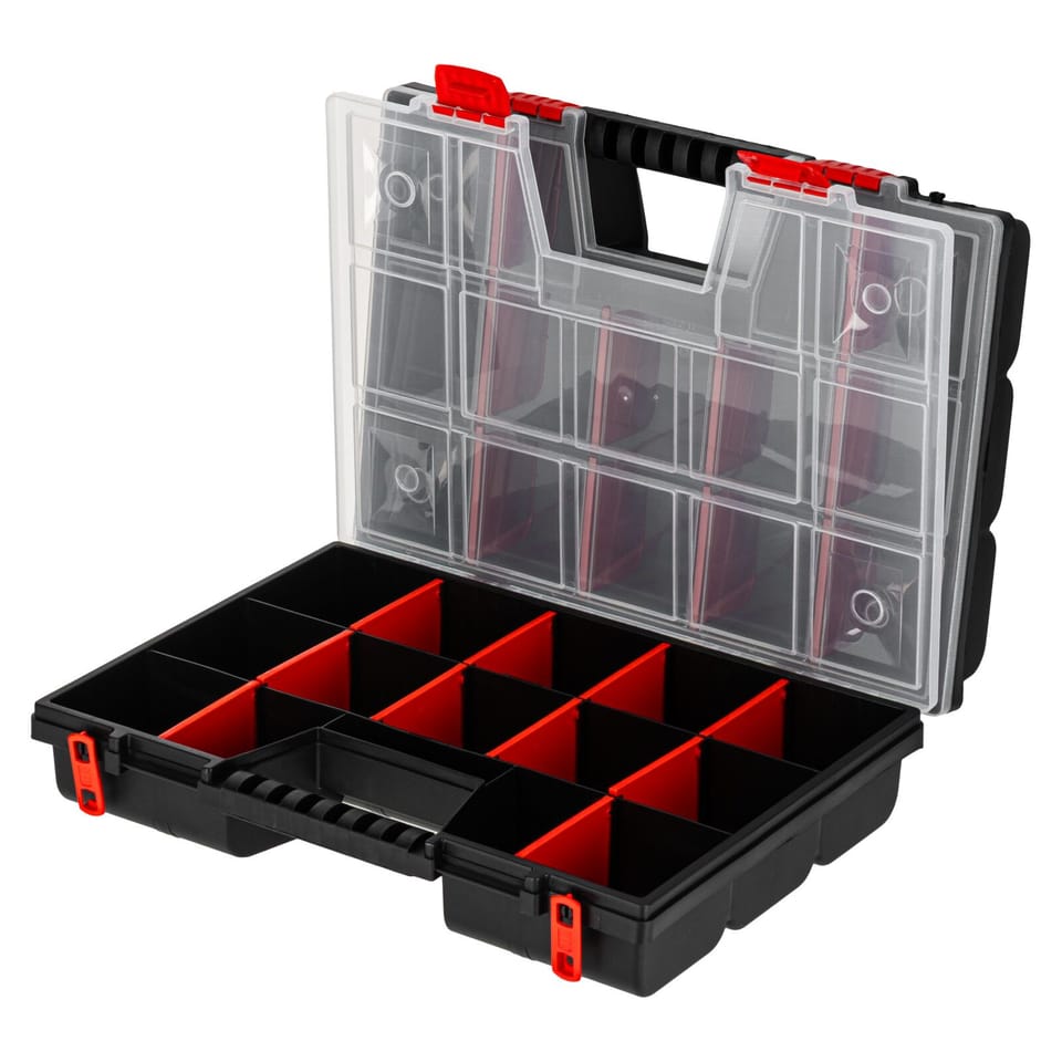 - These are two organizers of 15 compartments in each, combined with each other make them very versatile and easy to transport