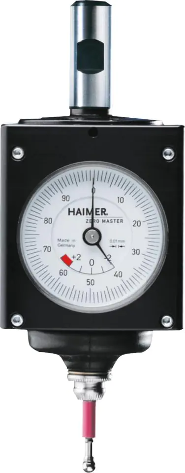 Design: the smallest 3D dial indicator in the world, for mounting on the spindle of a milling machine or head. The clamping pin has a diameter of 10 mm, thanks to which it can be used on machine tools with SK 30 or with small HSK spindles. The sensor tip is replaced without tools. All universal 3D sensors are individually measured and adjusted during assembly to ensure maximum measurement accuracy. The Zero Master sensor can be equipped with a short measuring tip (4 mm ball) and a long measuring tip (8 mm ball). The test tips fit all Haimer 3D measuring sensors.