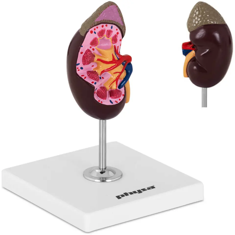 Manufacturer's code: 10040315The anatomical model of the human kidney by Physa was created to teach anatomy. High accuracy of workmanship makes it an ideal teaching aid in schools, universities, clinics, clinics, offices, hospitals as well as for home use.