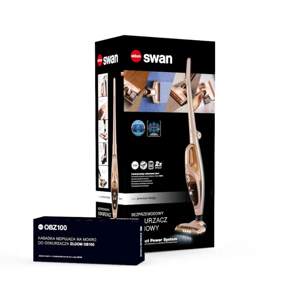 Wysoko wydajny akumulatora litowo-jonowy pozwala na 30 minut nieprzerwanej pracy w niskim trybie. Model OB100 SWAN jest przystosowany do pracy z nasadką mopującą na mokro OBZ100 (do nabycia osobno). W połączeniu z tą nasadką otrzymujesz kompletny zestaw "3w1", który służy do odkurzania, mycia podłóg oraz oczyszczania mniejszych powierzchni za pomocą odłączanego odkurzacza ręcznego.