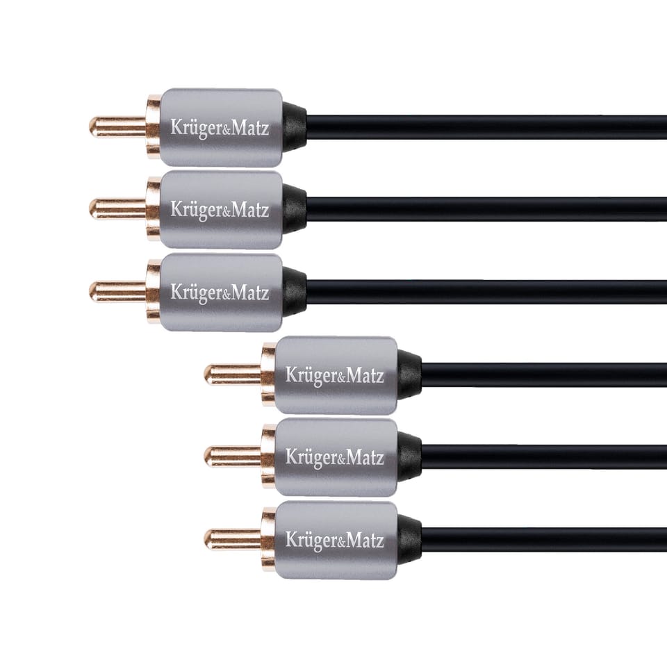 High-end cable for transmitting audio and video, on both sides terminated with three RCA plugs. Thanks to the use of main wires made of pure copper and gold-plated plugs, you can be sure that the signal will be perfect and the cable will serve you for a long time. The product is ideal for modern audio/video systems. Kruger & Matz cables are characterized by high quality of workmanship and compliance with standards set out in Polish and international standards.