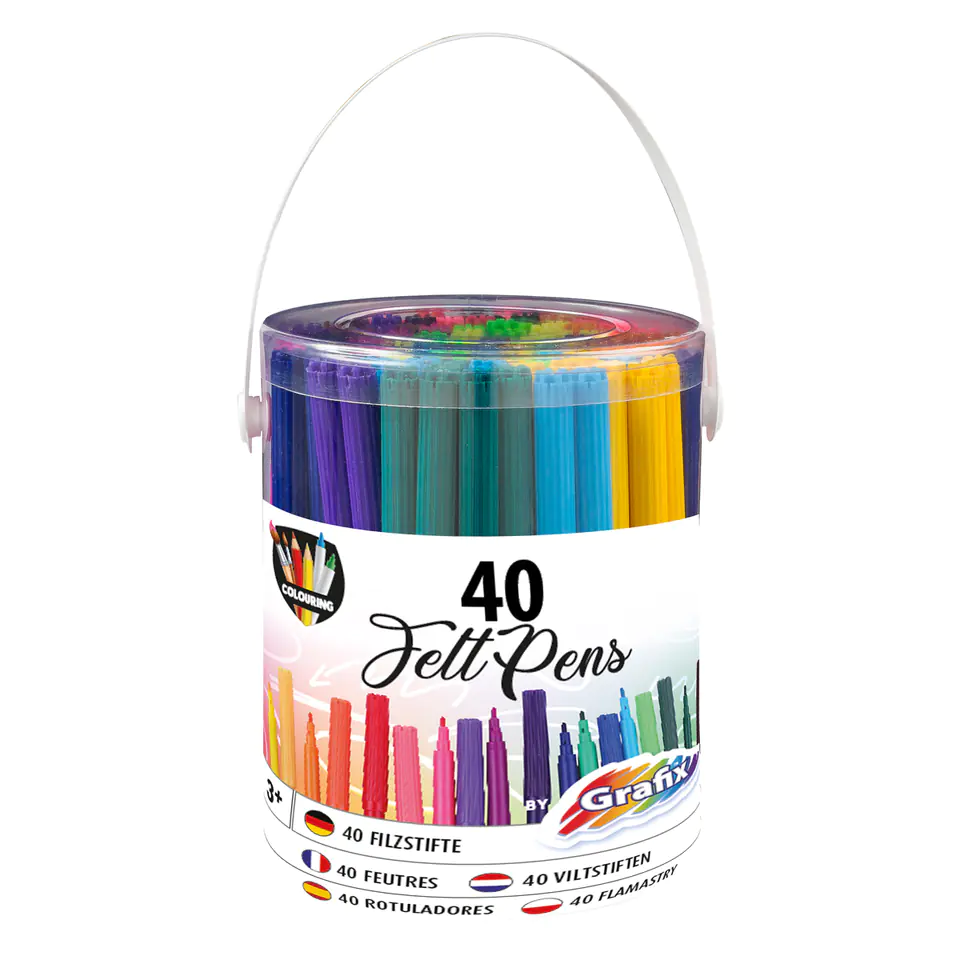 - There are 40x markers in different colors in the bucket