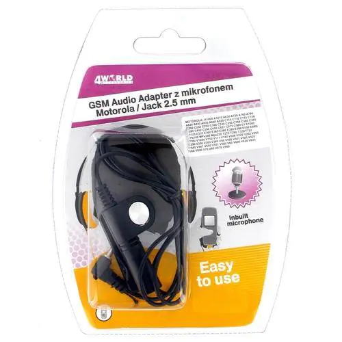 Audio adapter additionally equipped with a microphone for a mobile phone. Allows you to connect standard headphones with a 3.5 mm mini jack plug to your phone. Thanks to the adapter, the phone can be connected to any amplifier, active / passive speakers. stereo headphones, etc. The adapter allows you to listen to MP3 files, radio (the phone must have such functions) and thanks to the microphone gives the possibility of using as a headset in the car.