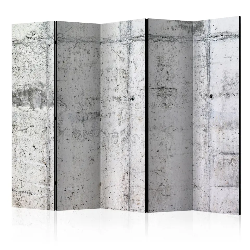 Decorative screen "5-piece screen - Concrete wall II [Room Dividers]" is a unique decoration for modern interiors. A 5-piece, made of wood and double-sided printed screen will not only discreetly divide the space but also create an amazing arrangement in the interior. Perfect workmanship and an original motif in Full HD print quality will make room screens give any interior a unique charm.