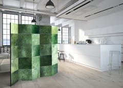 Decorative screen "5-piece screen - Green puzzle II [Room Dividers]" is a unique decoration for modern interiors. A 5-piece, made of wood and double-sided printed screen will not only discreetly divide the space but also create an amazing arrangement in the interior. Perfect workmanship and an original motif in Full HD print quality will make room screens give any interior a unique charm.