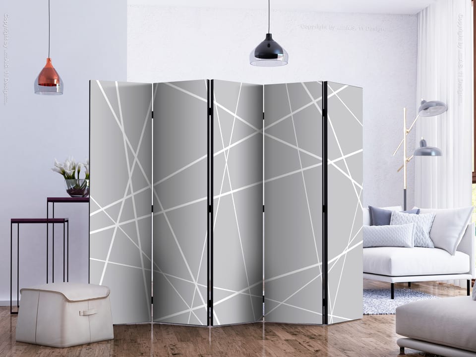 Decorative screen "5-piece screen - Modern cobweb II [Room Dividers]" is a unique decoration for modern interiors. A 5-piece, made of wood and double-sided printed screen will not only discreetly divide the space but also create an amazing arrangement in the interior. Perfect workmanship and an original motif in Full HD print quality will make room screens give any interior a unique charm.