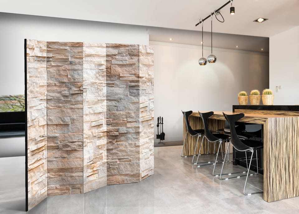 Decorative screen "5-piece screen - Stone sophistication II [Room Dividers]" is a unique decoration for modern interiors. A 5-piece, made of wood and double-sided printed screen will not only discreetly divide the space but also create an amazing arrangement in the interior. Perfect workmanship and an original motif in Full HD print quality will make room screens give any interior a unique charm.