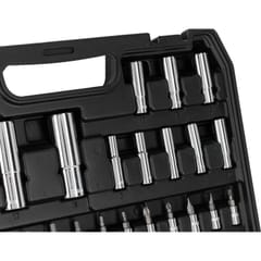- 1/4" sockets with tips: PH 1, 2; PZ 1, 2; flat: 4, 5.5, 7; HEX 3, 4, 5, 6; Torx T8, T10, T15, T20, T25, T30