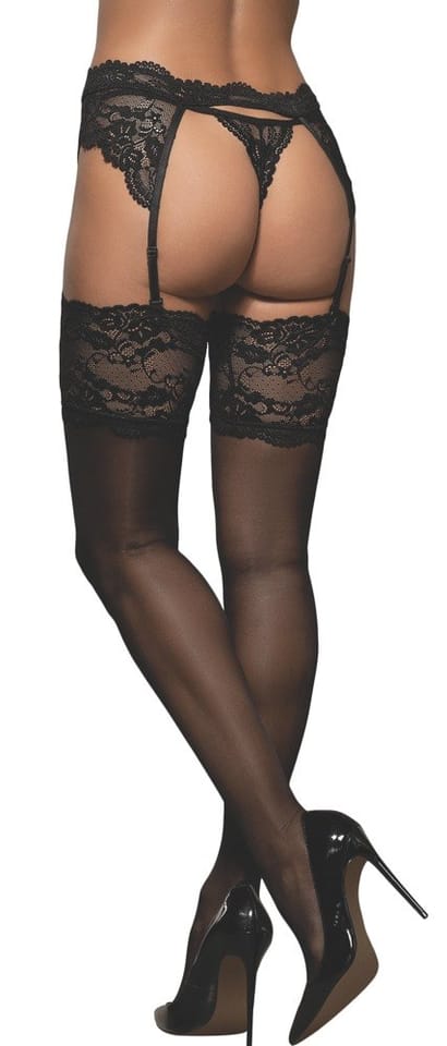Do you want to try something sensual and delicate? Perhaps... Pleasant to the touch, translucent material and black, richly decorated lace? You will like such a playful combination! Choose these stockings and see what they can do in combination with a sexy set or corset. It will be gooorąco!