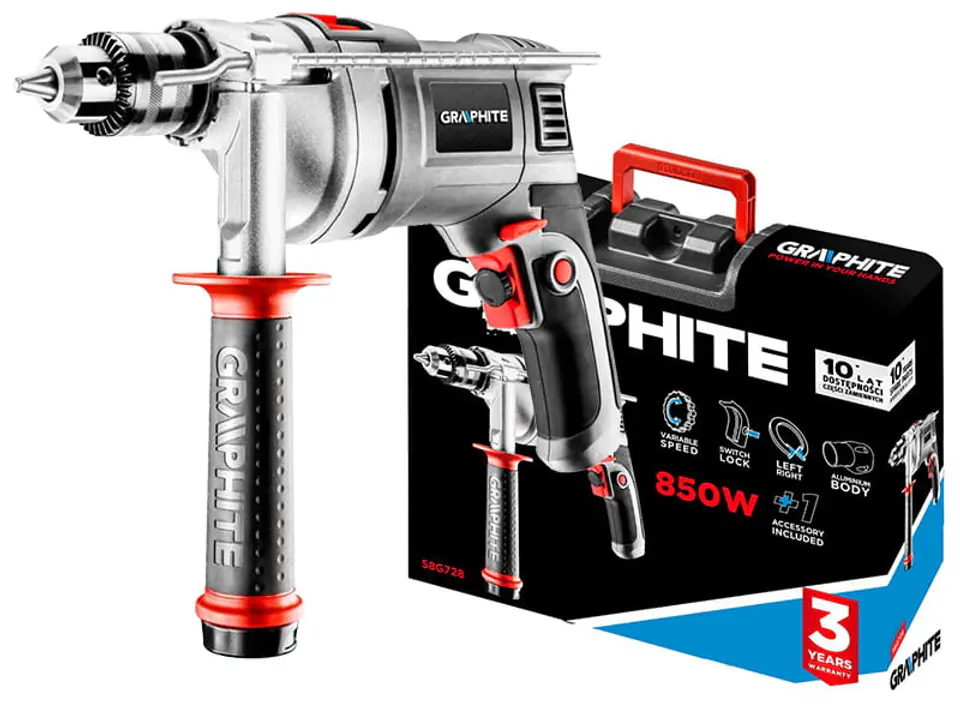 850W Hammer Drill, 13mm Graphite 58G728 Chuck