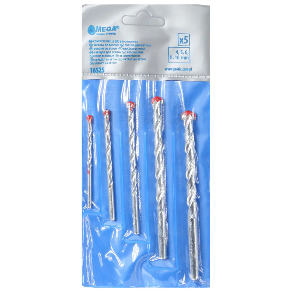 8PC MASONRY DRILL SET. CONTENTS: 3X60; 4X75; 5X75; 6X100; 7X120; 8X120; 9X120; 10X120MM. MASONRY DRILLS CHROME PLATED WITH CARBIDE TIPS PAINTED IN RED.