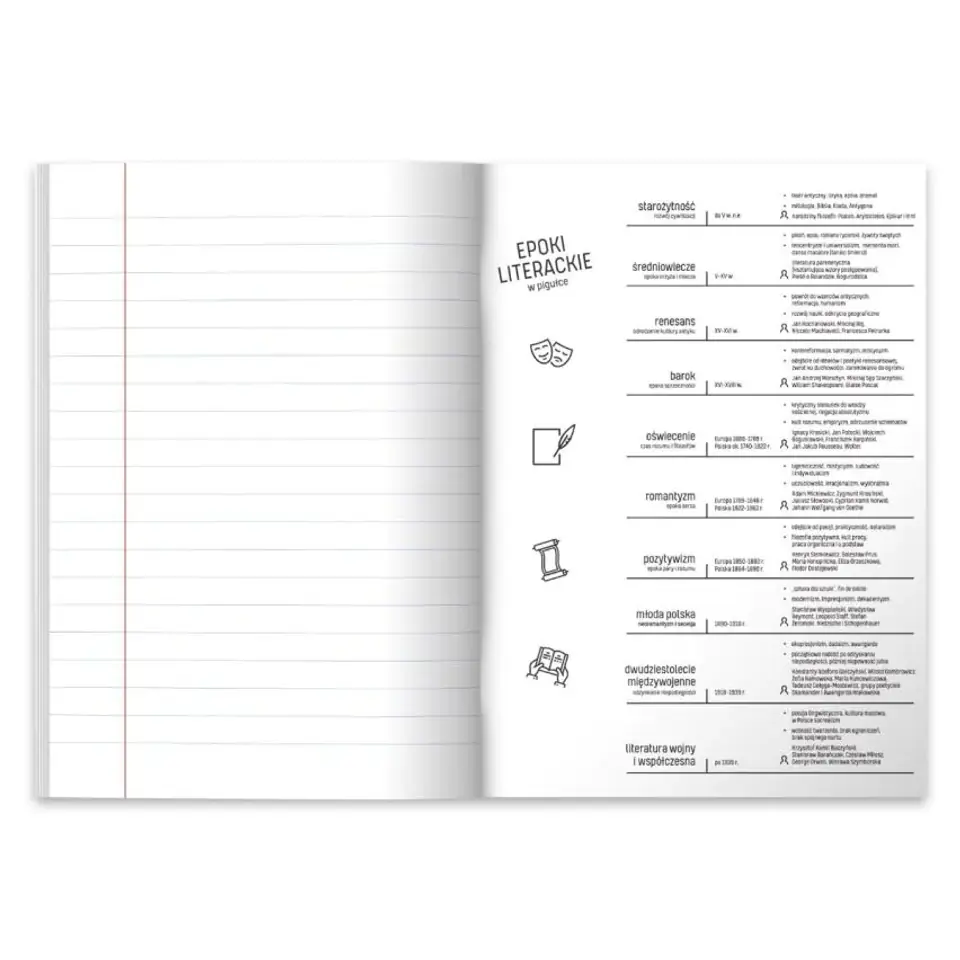 ISSUE A5 SUBJECT 60 SHEETS IN A LINE – LANGUAGEPOLISH The Herlitz brand is lively, colorful and oriented towards current trends and user preferences. In Poland since 1992, in Europe for over 100 years! It accompanies consumers from the early school years, in professional work and everyday life. Today, it offers a wide range of office, stationery and school supplies – for people who want to make their everyday life more beautiful and colorful! PRODUCT INFORMATION Subject notebook for Polish A5 soft cover type Soft Touch. The notebook has 60 lined pages with a margin. On the cover there is the name of the item along with a thematic picture and a funny inscription. On the inside of the front cover pulls a thematic – literary eras. TECHNICAL DATA model – subject notebook for Polish format – A5 ruling – line with margin thickness – 60 pages cover – soft, soft touch weight – sheets 70 g / m2; cover 190 g/m2 type – staple-sewn manufacturer – Herlitz Made in Poland 9577453