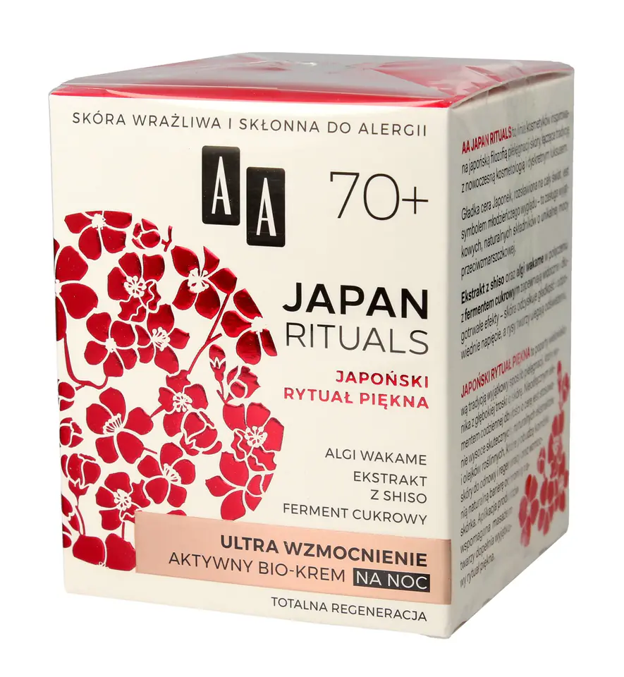AA JAPAN RITUALS is a line of cosmetics inspired by the Japanese philosophy of skin care combining tradition with modern cosmetology and discreet luxury. The smooth complexion of Japanese women, made famous all over the world, is a symbol of youthful appearance – it is due to unique, natural ingredients with unique anti-wrinkle power. Shiso extract and wakame algae in combination with sugar ferment provide visible and long-lasting effects – the skin becomes smoothed, perfectly moisturized and radiant.