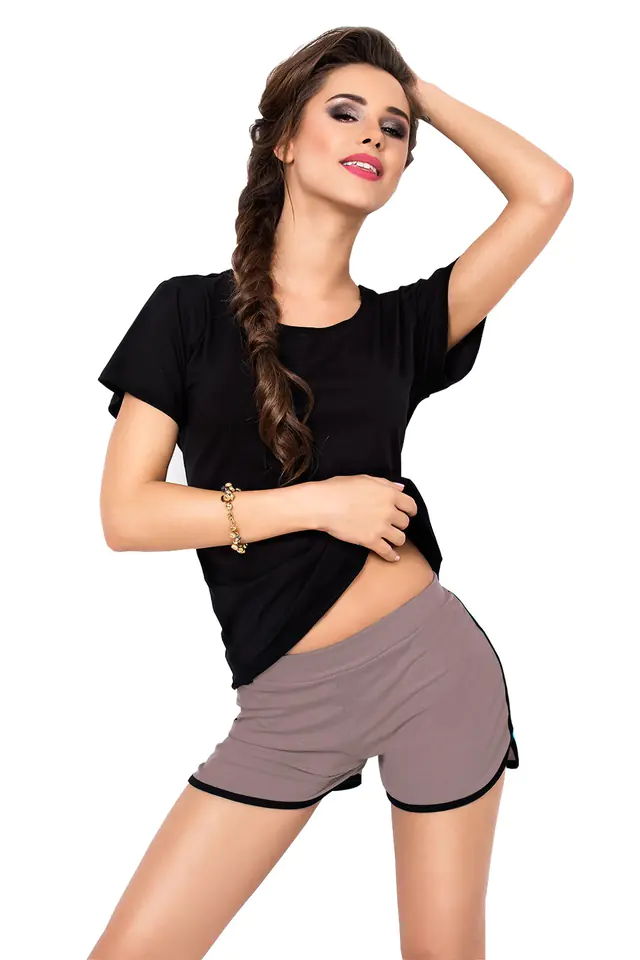 WISKZOWY KOMPLECIK Z KRÓTKIM RĘKAWKIEM ORAZ SZORTAMI Z MAŁYMI WYCIĘCIAMI PO BOKACH. DOSTĘPNE WERSJE KOLORYSTYCZNE ZAWSZE Z CZARNĄ KOSZULKĄ