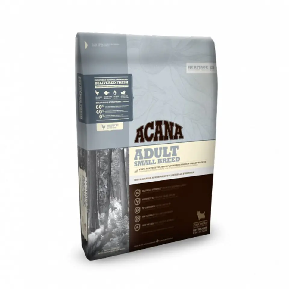 Prepared in our award-winning cuisine in Canada, ACANA HERITAGE ADULT SMALL BREED is filled with cage-free chicken meat, mulch eggs, flounder meat caught in a natural environment and sun-ripened fruits and vegetables. The ingredients supplied daily from the Alberta region are fresh and full of nutrients so that your dog is happy, healthy and strong. Read the line-up and you will definitely agree with us!