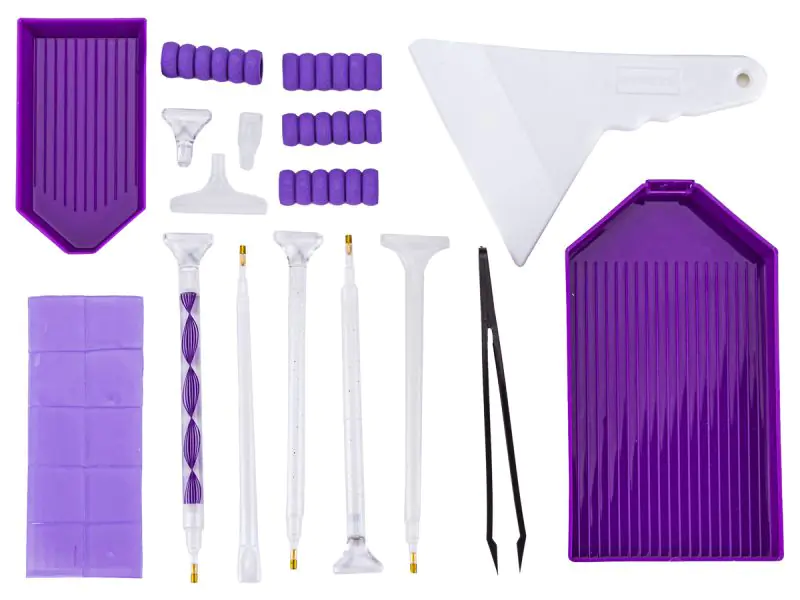 A set of additional accessories for diamond embroidery, which consists of many useful elements. This set will make it easier and more enjoyable to play in sticking diamonds.