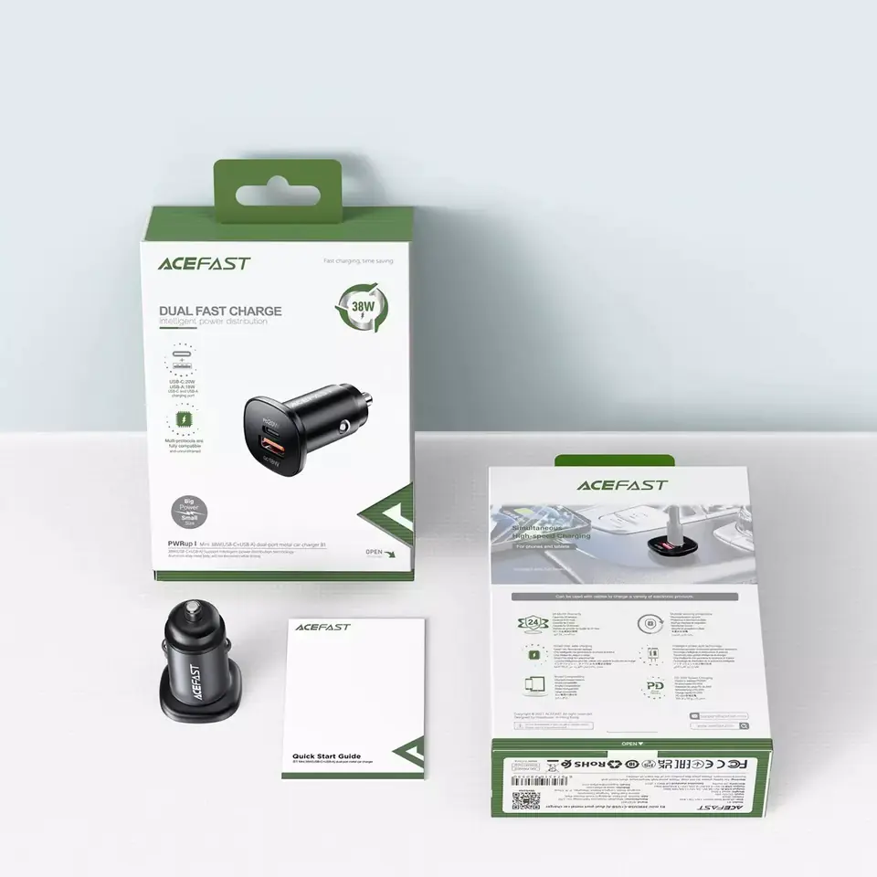 Acefast Car Charger 38W USB Type C/USB, PPS, Power Delivery, Quick Charge 3.0, AFC, FCP (B1)