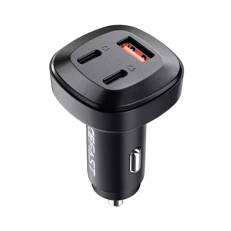 Fast car charger brand Acefast. It has 2 USB Type-C ports and 1 USB ports. USB Type-C plugs allow charging with 36W and 30W, together they can withstand loads up to 66W. It allows for fast charging, m.in. in PPS, Power Delivery, Quick Charge 4.0, AFC and FCP standards. You can connect 3 devices to it at the same time. It is made of fireproof PC material. It has been equipped with many protections such as against overheating, overvoltage, high voltage or overload.
