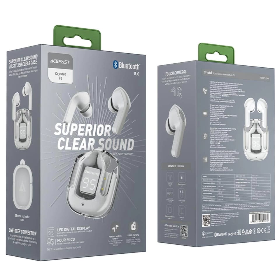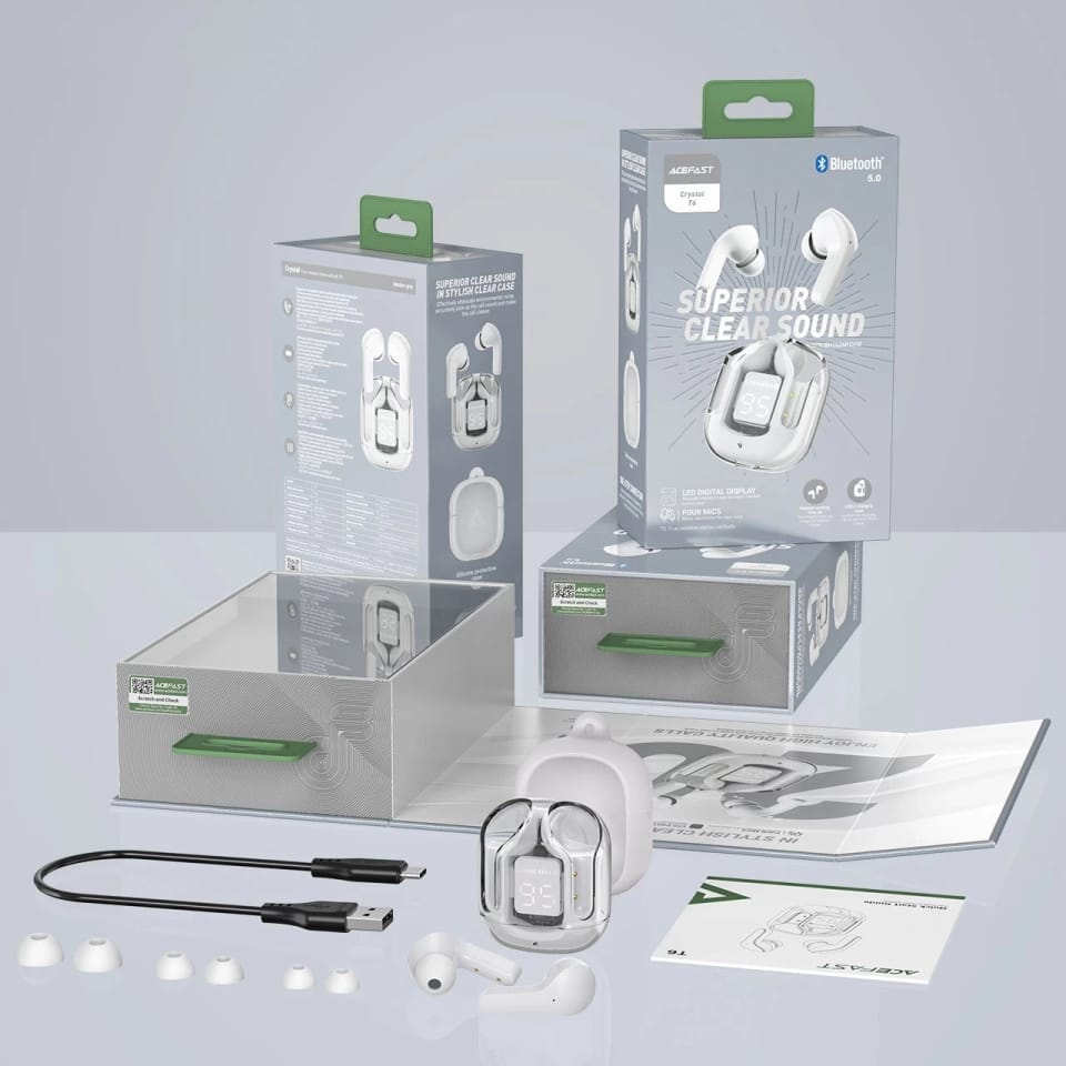 Acefast TWS In-ear Wireless Headphones with Bluetooth 5.0 and IPX4 Waterproof Rating – Grey (T6)