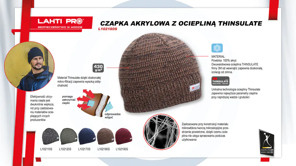 Acrylic cap with thinsulate insulation brown melange,lahti