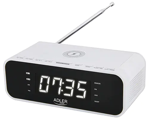 Aesthetic and loud alarm clock with wireless charger and FM radio. The time shown is clearly visible, thanks to the clear display. The alarm clock is powered from the electrical network, it also has a built-in battery power supply to maintain memory. Bluetooth 5.0 technology and AUX input, as well as built-in high-performance stereo speakers, let you listen to the crystal clear sounds of your favorite music from almost any source. In addition, the alarm clock has a built-in radio in which up to 30 stations can be programmed.