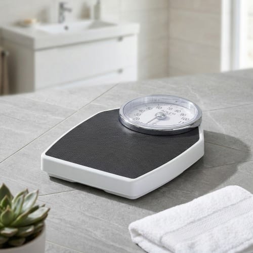 Classic, mechanical bathroom scale with a lifting capacity of 150 kg. If you don't trust displays, don't like them for some reason, or they just don't fit into your bathroom, choose the AD 8177 scale. You do not need to turn it on, you just stand and read the result - and this is very convenient.