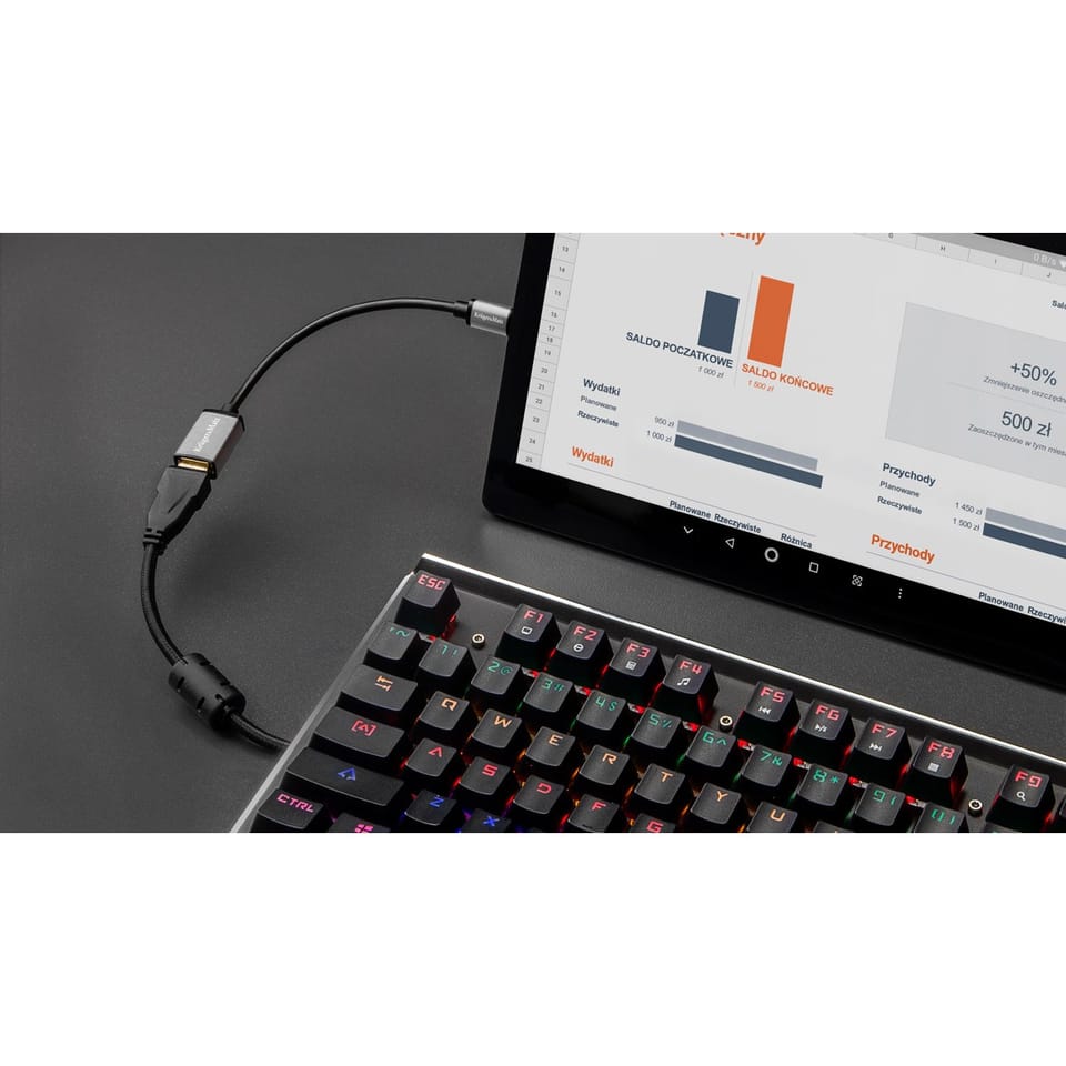 Connecting an external memory is not the only benefit of having a Kruger & Matz adapter. Thanks to this inconspicuous device, you can also increase the functionality of your tablet. Connect a keyboard to create a convenient work tool. The cable will also appeal to fans of smartphone games? with its help, you can connect the pad to increase comfort during the game.