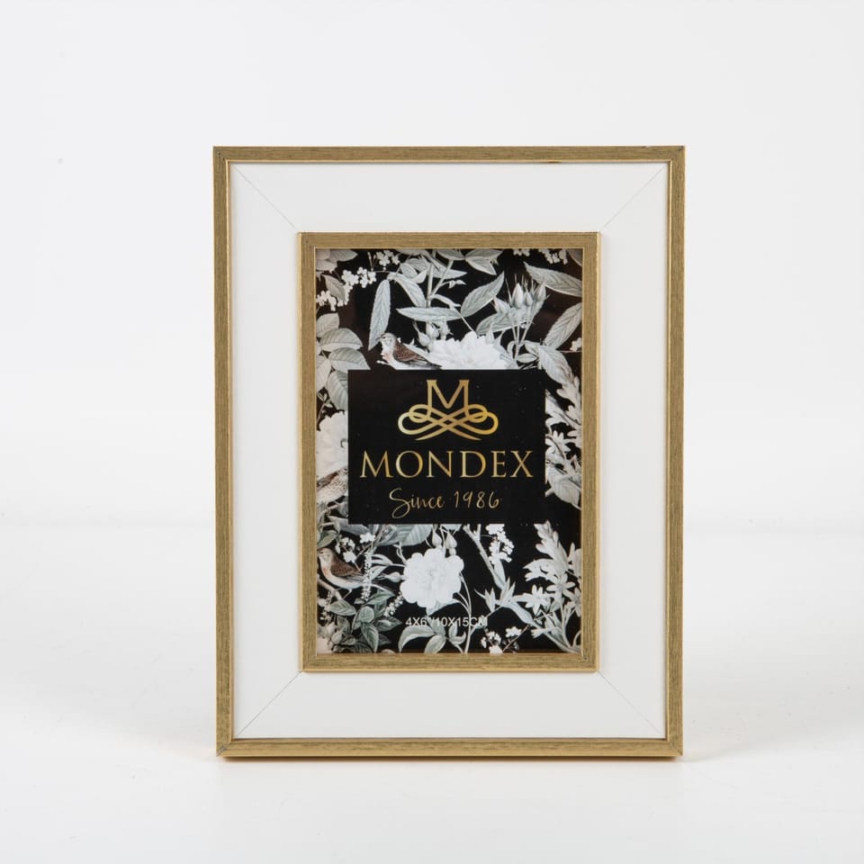 Photo frame from the ADI series by MONDEX. Made of MDF. The frame is white and gold in color. The size of the photo is 10x15cm. The frame can be placed as well as hung vertically or horizontally. Individually packed in foil.