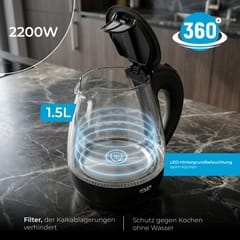 Adler AD 1224 electric kettle 1.5 L Black,Transparent 2000 W