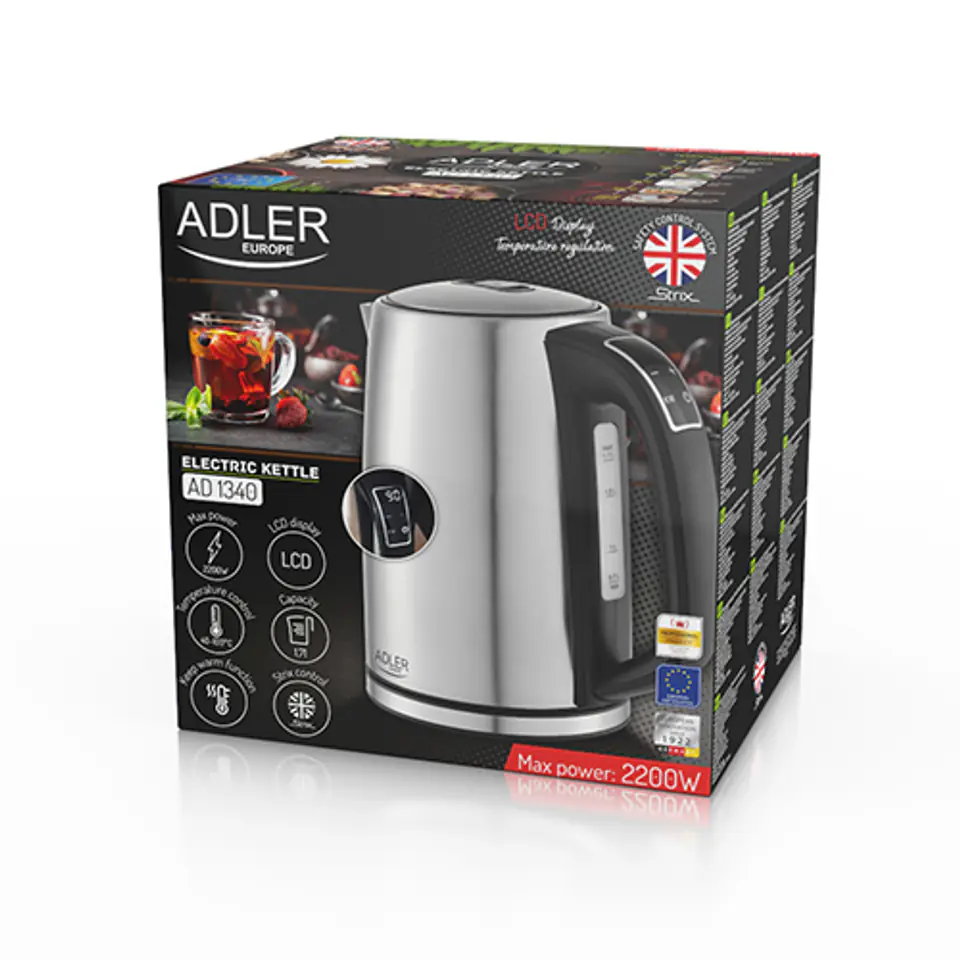 Adler AD 1340 electric kettle 1.7 L 2200 W Black, Silver
