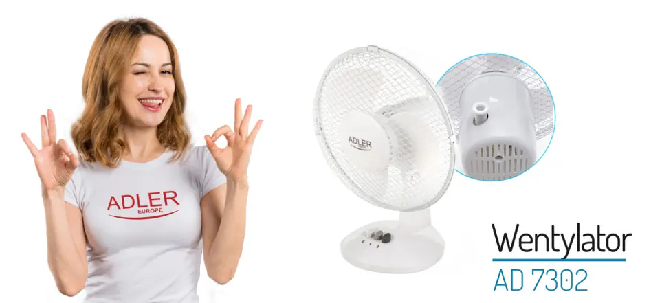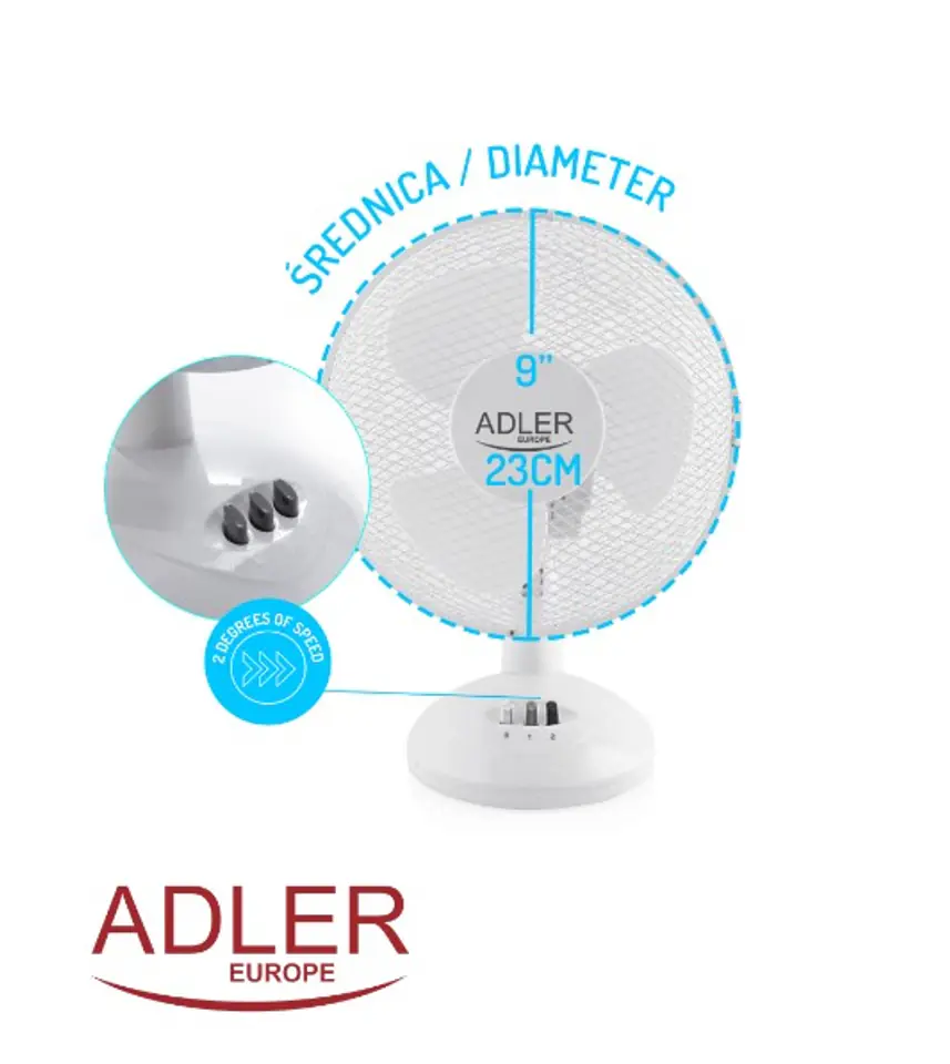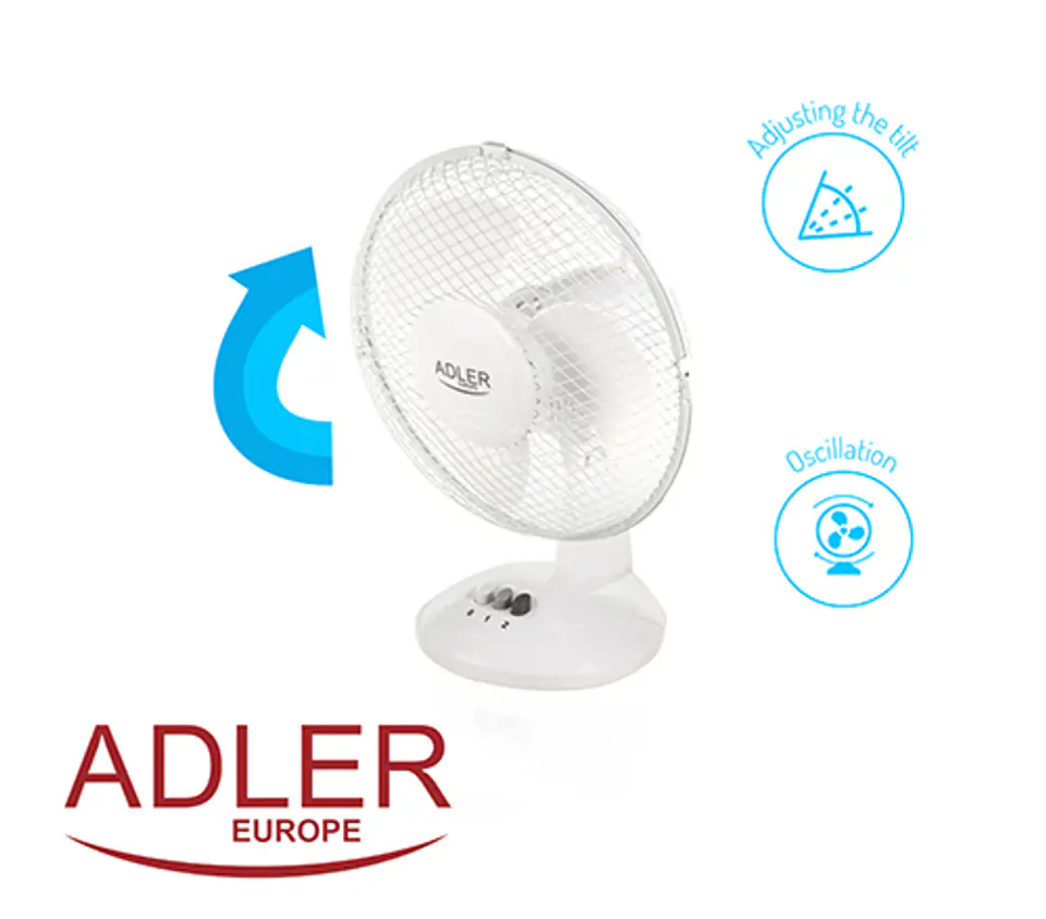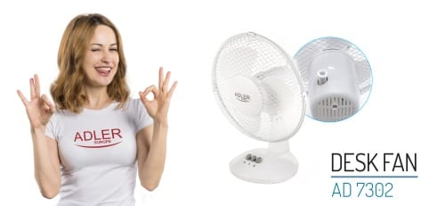 Adler AD 7302 Desk Fan, Number of speeds 2, 60 W, Oscillation, Diameter 23 cm, White