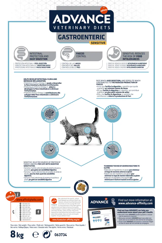 ADVANCE DIET Gastroenteric Sensitive - dry cat food with food sensitivity 8kg [926198]