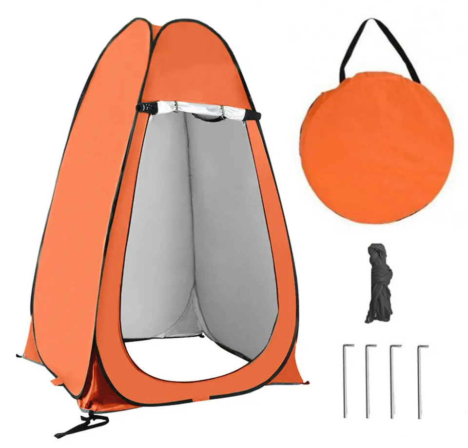 Multifunctional, self-unfolding beach tent. It will be perfect as a camping shower and toilet, but also as a beach changing room. It instantly folds and unfolds thanks to the use of POP-UP design. The tent has a wide and zippered entrance. The lack of a floor allows water to flow freely into the ground. An additional pocket on the back panel increases the practicality of the set. A product necessary for every sunbather and camper.